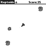 | An Asteriods-clone which works quite nice and is fun to play. Like Loderunner and Space Invaders it isn't top of the notch in Palm-game programming, but it does not need all your memory and runs fine on b/w-screens also. | |
