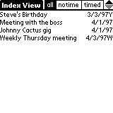 | Lets you view all entries from the calendar in one long index-list. Very useful if you remember a date or event but can't really find it in your calendar. | |