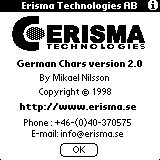 | A simpler way to write german "Umlaute". Instead of using the special-function, just draw a horizontal bar over the letter and it will be converted to the correct sign. Unfortunately this seems to be quite picky from time to time, i.e. the program does not always recognize a stroke as it should (or maybe my graffiti-abilities are too poor). You need Hackmaster installed to use it. | |
